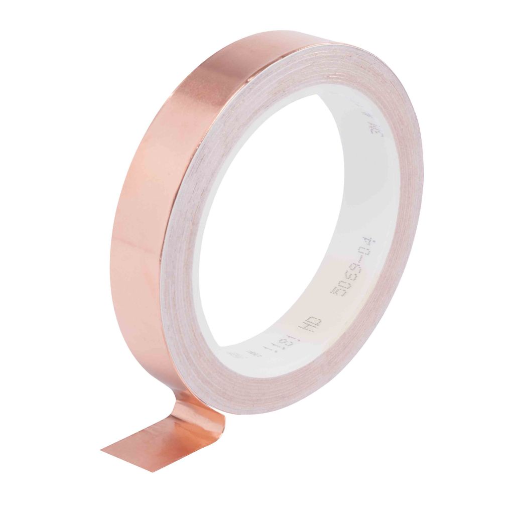 3M™ 1181 Tape consists of a 1-ounce deadsoft copper foil backing and a unique electrically conductive pressure-sensitive acrylic adhesive.