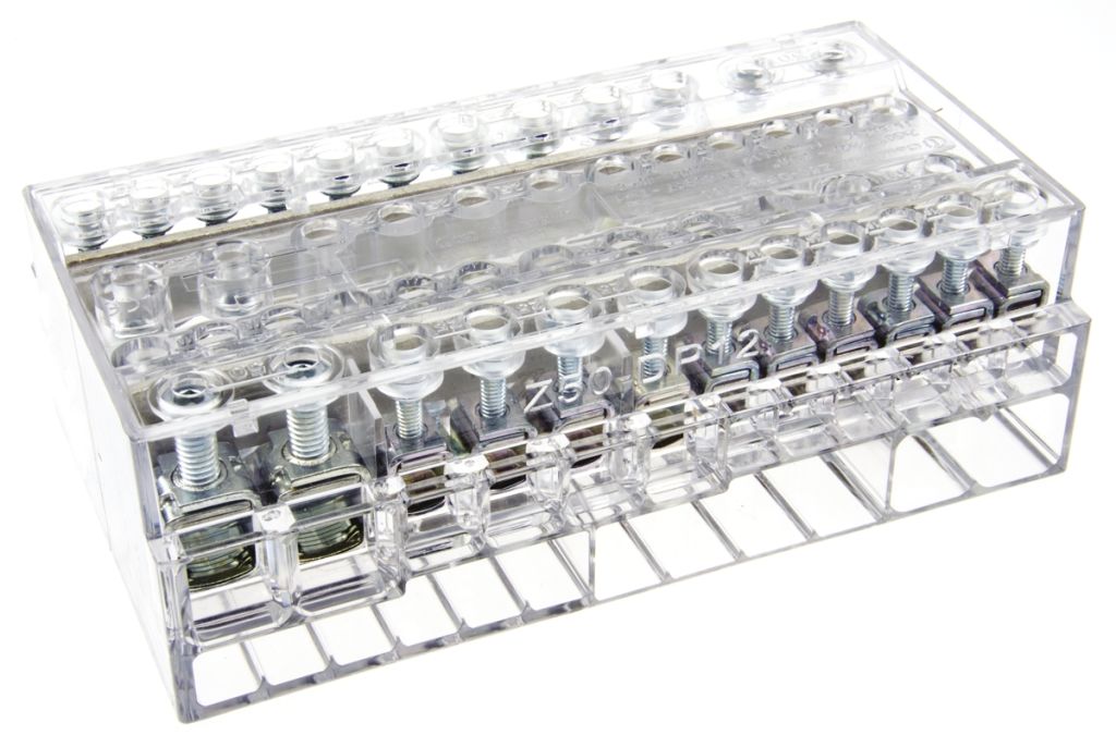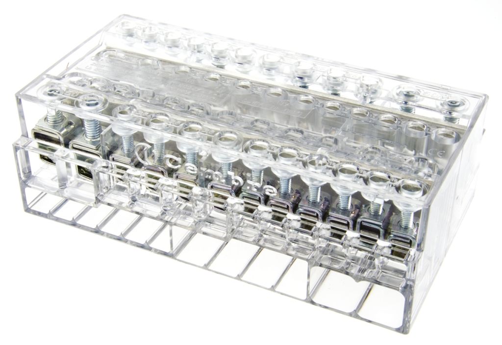 | Product description | RS PRO Distribution Block, 12 Way, 16 mm², 25 mm², 50 mm², 160A, 500 V, Clear |