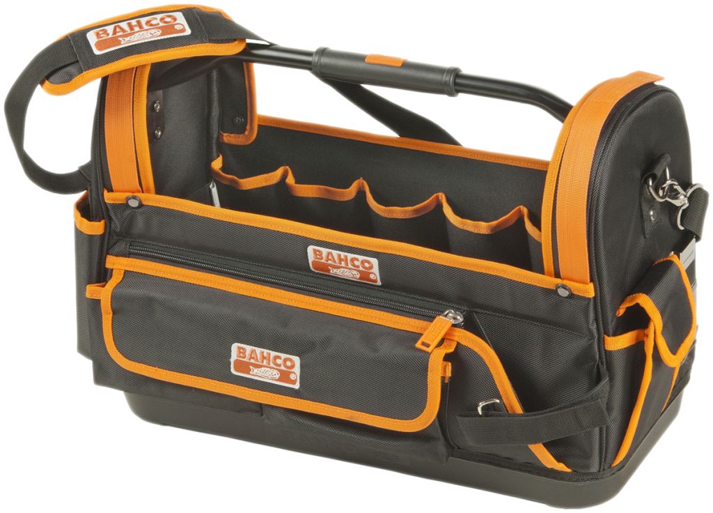 A reliable and useful open tool bag made from a combination of denier and polyester fabrics. It has a hard bottom for isolation and easy cleaning, with a padded shoulder strap in addition to the centred soft grip handle. The Bahco open tool bag is great choice for easy organisation and quick access to your tools making it an ideal choice for working professionals.