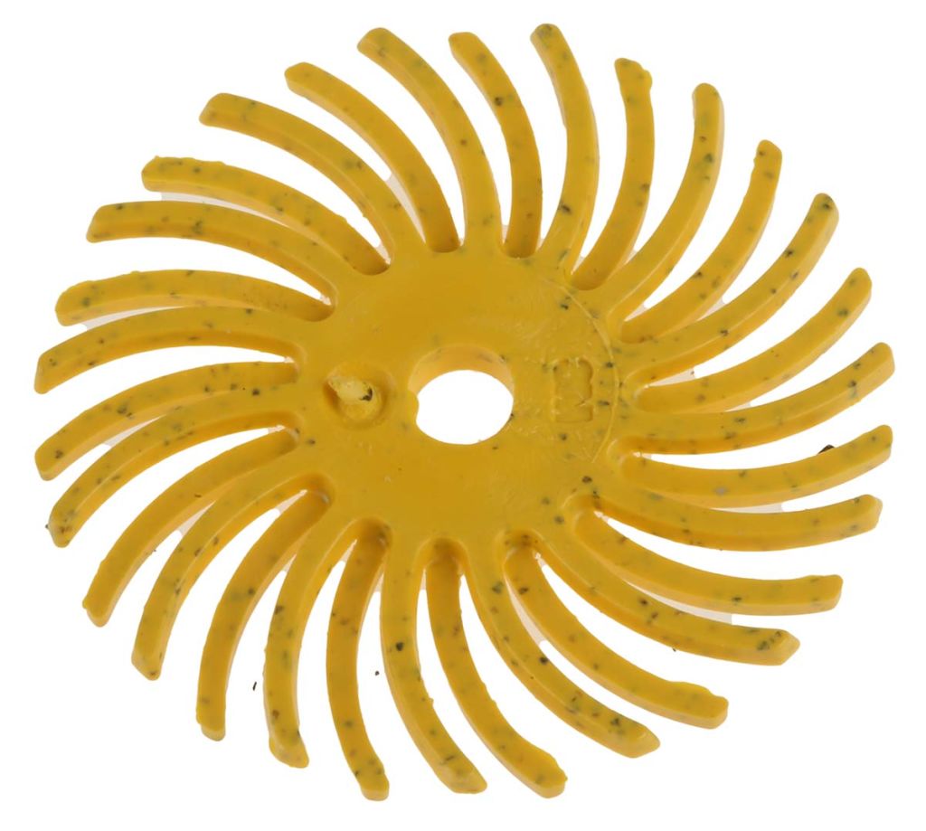 The Scotch-Brite™ Clean and Strip disc is a surface conditioning disc that combines a long lasting Cubitron™ abrasive and is mounted on a spindle. The plastic moulded disc is built into one construction and filled with a 3M™ Cubitron™ abrasive grain. The bristle disc allows for a uniformed finish more efficiently, by working harder and faster than traditional abrasives without sacrificing quality. Suitable for removing paint and rust from seams, doors, moulding, welds and other tight areas.