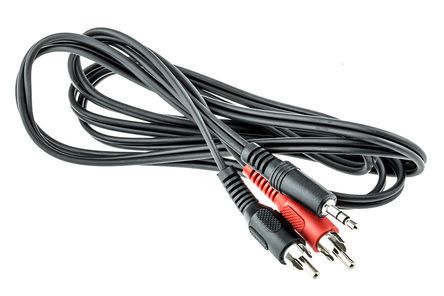Product description RS PRO Male RCA x 2 to Male 3.5 mm Stereo Jack Aux Cable, Black, 1m