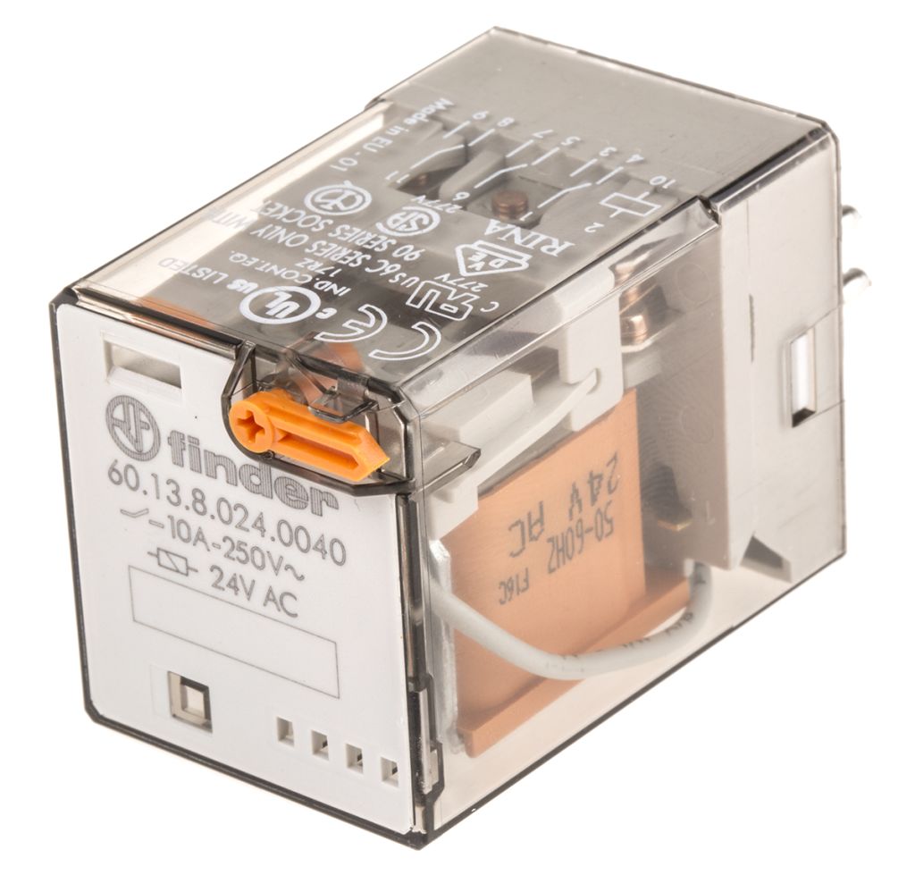 | Product description | Finder, 24V ac Coil Non-Latching Relay 3PDT, 10A Switching Current Plug In, 3 Pole, 60.13.8.024.0040 |