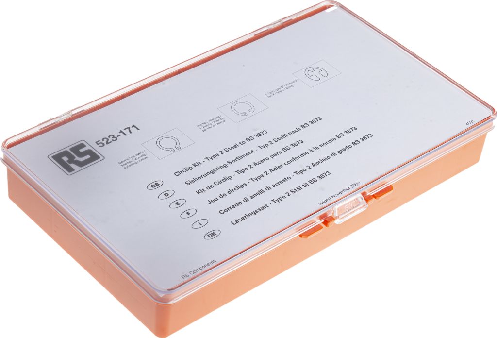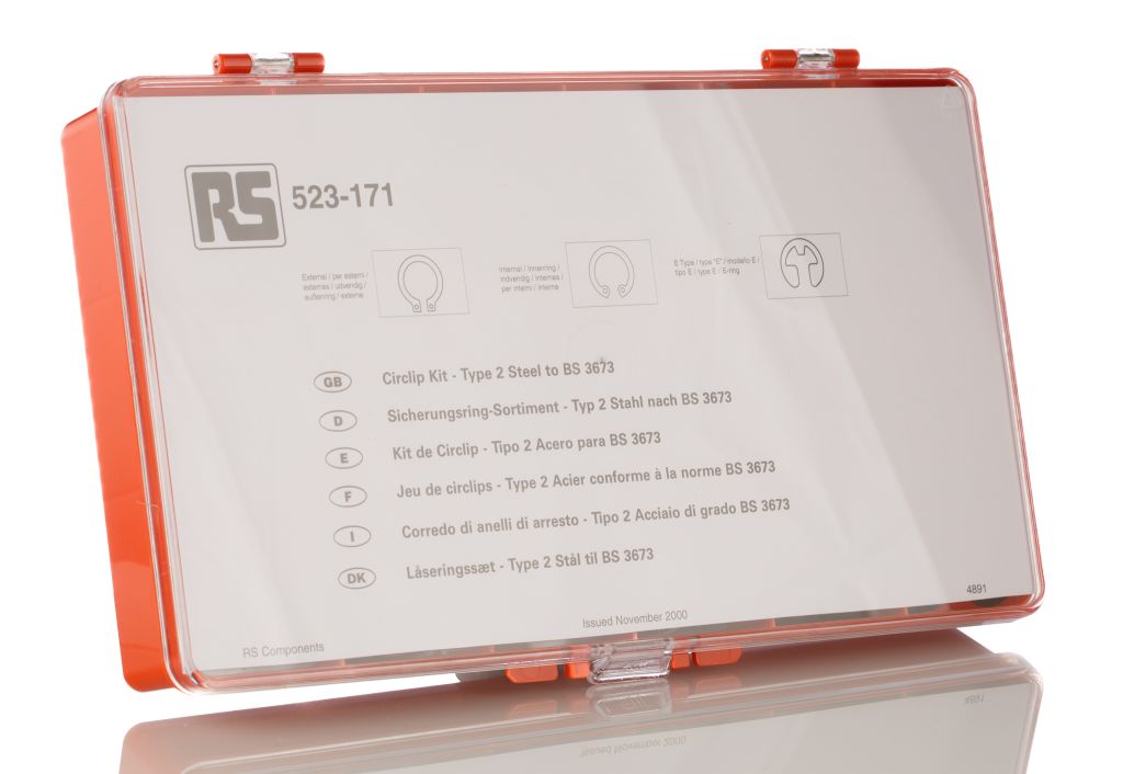 | Product description | 450 piece E Type, External, Internal Steel Circlip Kit for 13 → 20 mm, 14 → 25 mm Shaft Diameters |
