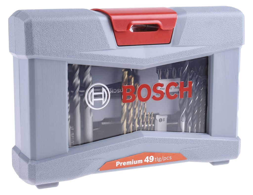 Bosch 49 piece premium mixed drill set. A comprehensive collection of drill and screwdriver components suitable for professional and DIY applications.
