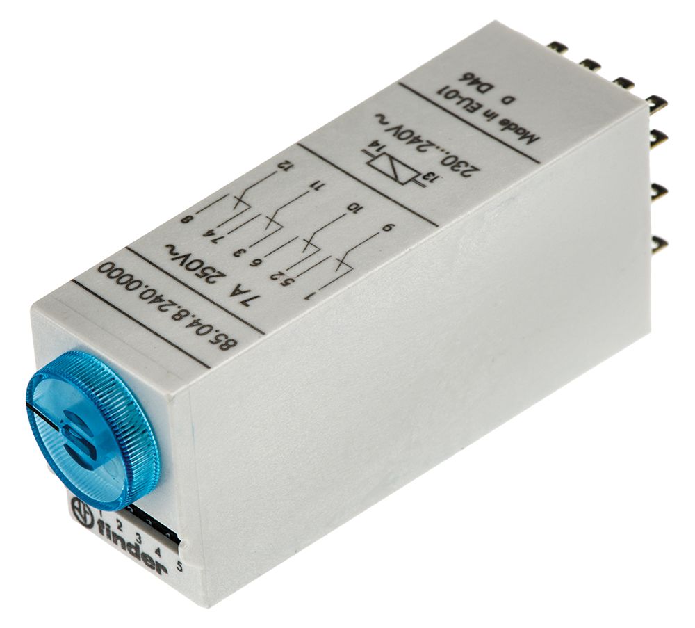 | Product description | Finder 4PDT Multi Function Timer Relay, 230V ac 0.05 → 100 s, 3 → 100min, Plug In Mount |