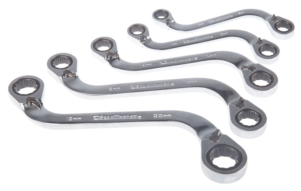 RS Pro Reversible "S" Gear Wrench Spanners are designed to reach areas where standard tools cannot. Curved shape eliminates the problem of reaching round obstacles. Manufactured with quality in mind, from a fully hardened and tempered, chrome vanadium steel. Delivers a super smooth motion in both directions, ensures a hard-wearing essential tool for any environment, especially useful for automotive technicians.