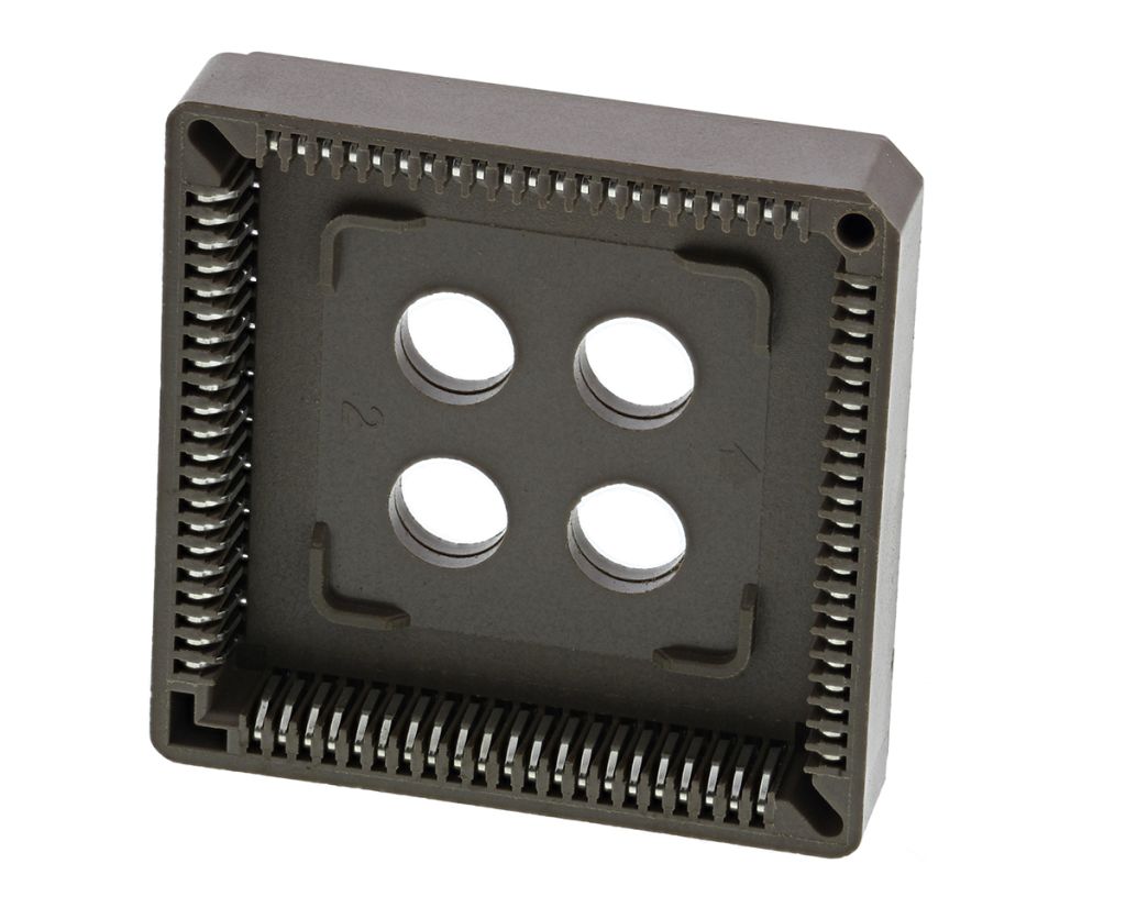 These Swiss Preci-dip PLCC 540 Series sockets with SMT terminations to the PCB come with square sizes for IC packages according to JEDEC MO-047 and rectangular size (32 way) according to JEDEC MO-52, low profile.