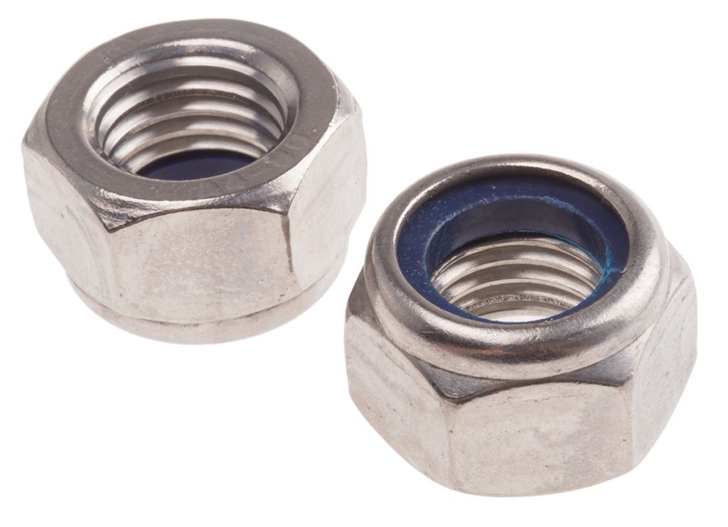 Unlike conventional fasteners, lock nuts, sometimes known as self-locking nuts, contain a plastic insert that deforms to the thread of the fastener and prevents loosening without the aid lock threading adhesive. As such, they are often used where security in fastening is required. They are useful when joining soft materials such as wood and plastics where high surface pressure might damage the material, or when there is a short clamp load. However, their principal advantage is in applications where there is a high degree of vibration. Locking nuts resist loosening over time in dynamic load conditions. As such they are often used in;