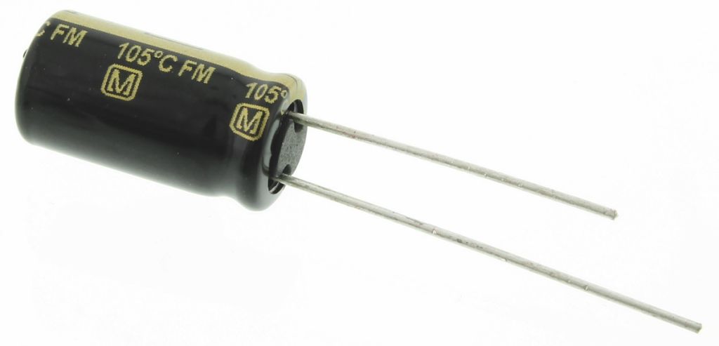 Panasonic FM Series Type A electrolytic capacitors offer low impedance (40% to 70% less than the Panasonic FC series) and high endurance. At +105°C, the endurance is 2000 hours to 7000 hours (depending on case size).