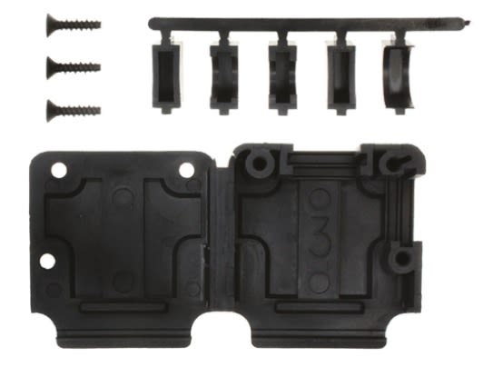 AMPLIMITE unassembled hinged box and lid unshielded cable clamps or backshell kits with a 180 and 90° cable exit option. These AMPLIMITE box and lid unshielded backshells have black thermoplastic housings with a textured finish, black thermoplastic gates and black zinc plated steel flat head screws. The cable diameter of these AMPLIMITE box and lid backshells can be adjusted by changing the cable support gates. The flat side of the cable support gates are for use with discrete wire and the semicircle side for use with jacketed cable. These AMPLIMITE backshells are for use with HDP Metal-Shell series d-sub connectors.