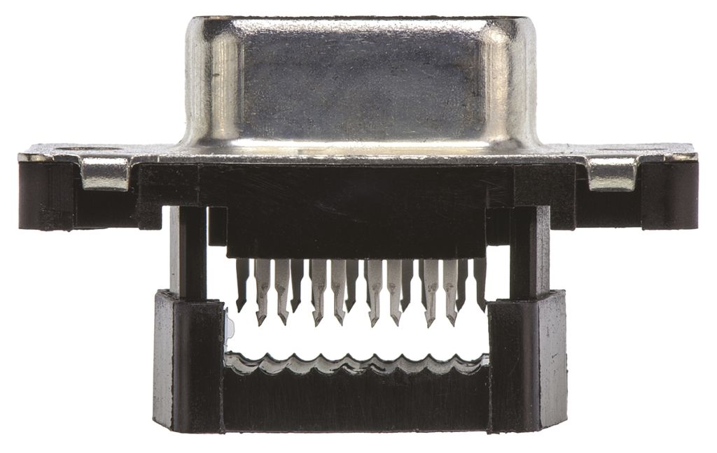 AMPLIMITE HDF-20 series low profile metal shell IDC d-sub connectors for flat ribbon cable. These AMPLIMITE HDF-20 series IDC d-sub ribbon cable connectors have pre-assembled black 94V-0 rated thermoplastic housings and covers with a tin plated steel front shell and are pre-loaded with duplex plated phosphor bronze contacts that accept 28 AWG and 26 AWG solid and stranded round conductor flat ribbon cable on 1.27mm centres.