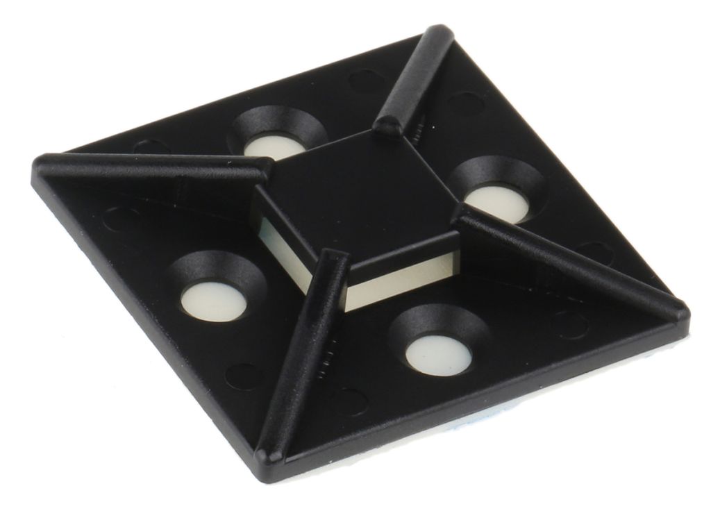 This adhesive cable tie base is designed as an anchor point to attach cables to another surface using a cable tie. For increased support, mounting holes are provided for screws. Its 4-way design enables you to thread cable ties either vertically or horizontally once mounted.