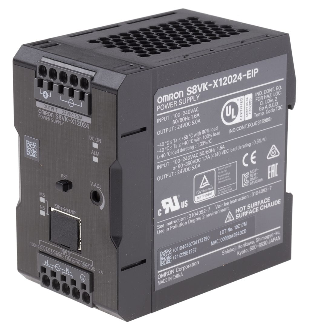 | Product description | Omron S8VK-X Switch Mode DIN Rail Power Supply 230V ac Input, 24V dc Output, 5A 120W |