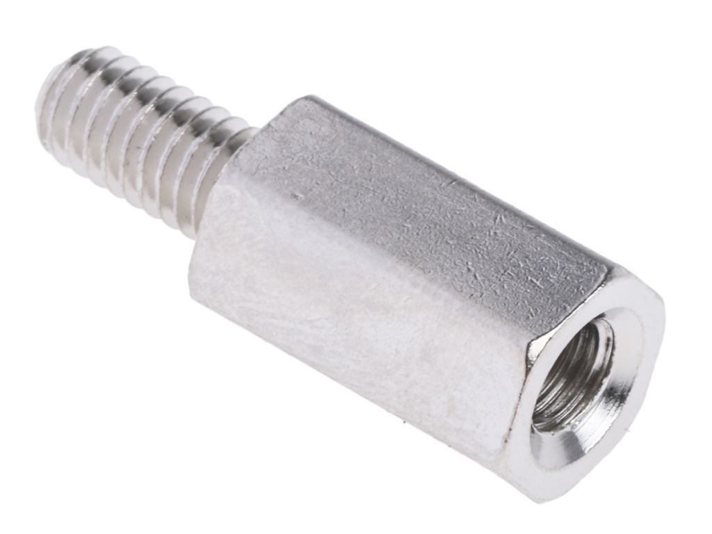 From RS Pro a range of robust, high-quality hexagonal shaped standoffs made from nickel plated brass with a metric internal thread or threaded stud on either end. These versatile standoffs are designed to securely mount your PCB as well as elevating it from other components such as the inside of a computer chassis or another PCB. They are also ideal for improving airflow space around components when the equipment becomes hot. These stand-offs are available in a range of different heights and threads sizes to suit a wide range of PCB applications