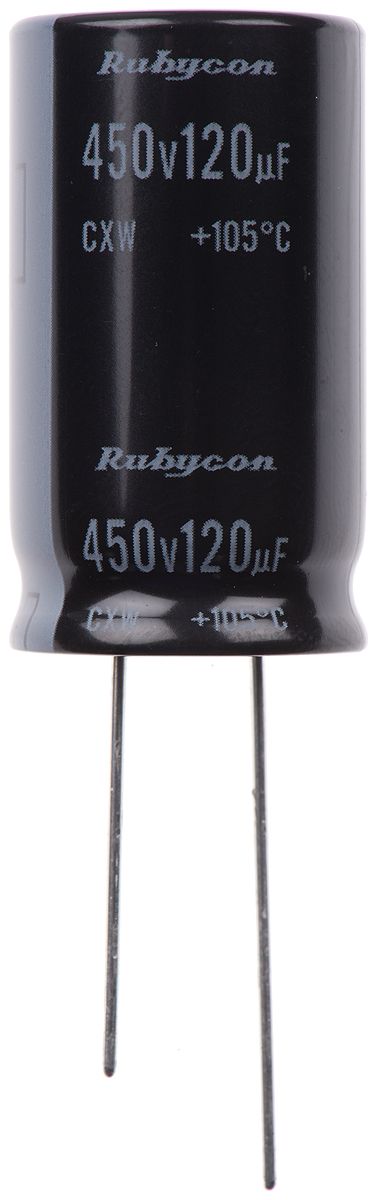 | Product description | Rubycon 120μF Electrolytic Capacitor 450V dc, Through Hole - 450CXW120MEFC18X31.5 |