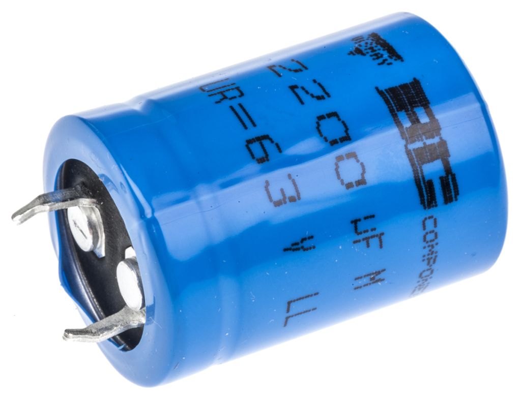 Vishay 2200μF Electrolytic Capacitor 63V dc, Through Hole – MAL209018222E3