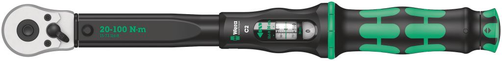 Wera 1/2 in Square Drive C2 Click Torque Wrench, 20 → 100Nm