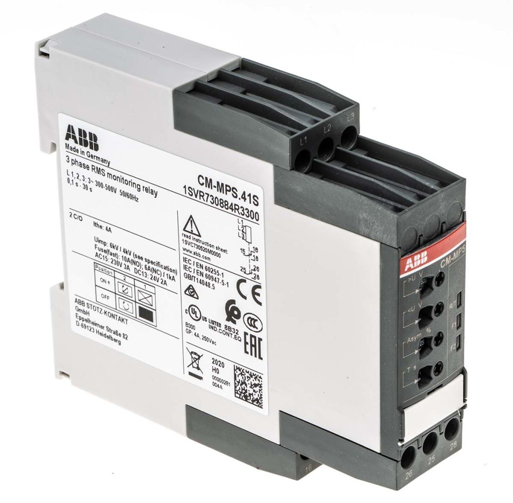 | Product description | ABB Phase, Voltage Monitoring Relay With DPDT Contacts, 3 Phase, Overvoltage, Undervoltage |