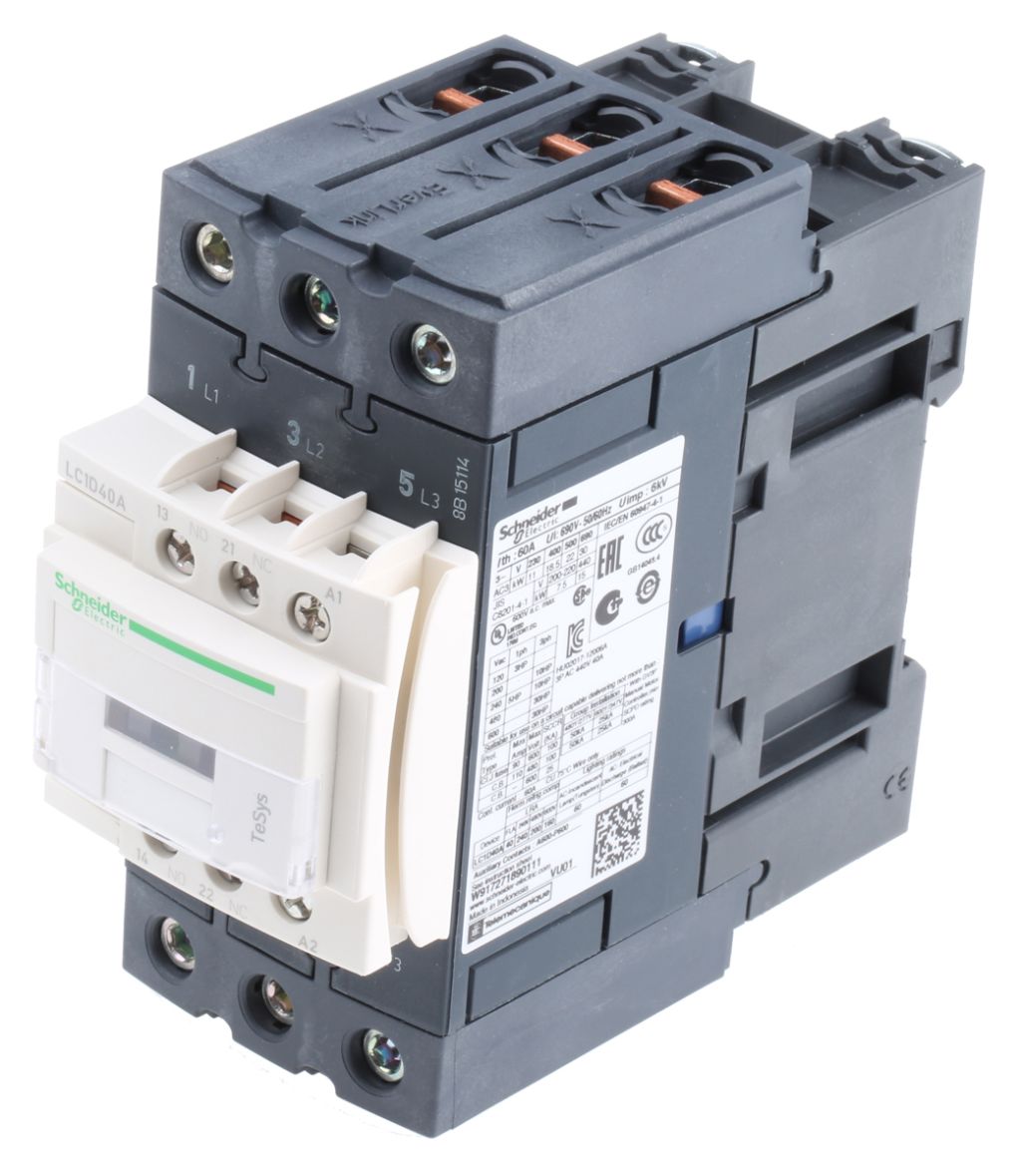 Schneider Electric TeSys D LC1D 3 Pole Contactor – 40 A, 24 V ac Coil, 3NO, 18.5 kW