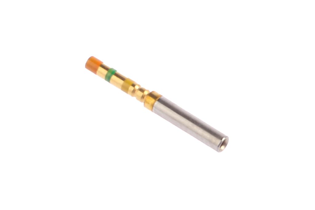 AMPLIMITE size 22 crimp snap-in pin and socket contacts for AMPLIMITE series 90 Mil-C-24308 military spec d-sub connectors. These size 22 crimp snap-in pin and socket contacts are made from gold plated copper alloy with a 0.030mm post diameter and accept a wire size of 0.08 to 0.40mm2 (AWG 28-22) and an insulation diameter of 0.054mm.