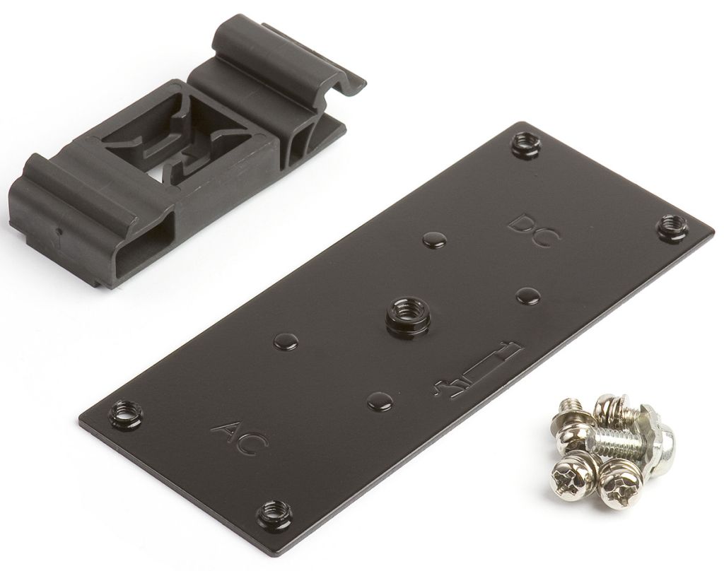 XP Power DIN rail clip kits are an essential accessory for the ECL15 Series. The clips are made from a flame retardant, black nylon and include hardware, screws and a drilling template.