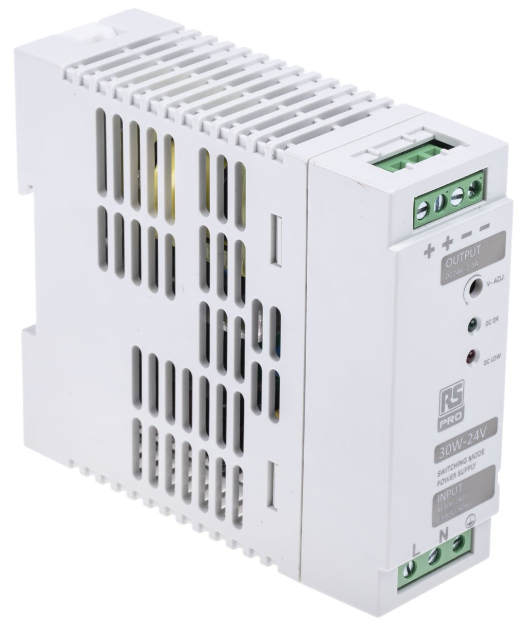| Product description | RS PRO Switch Mode DIN Rail Power Supply 230V ac Input, 24V dc Output, 1.3A 30W |