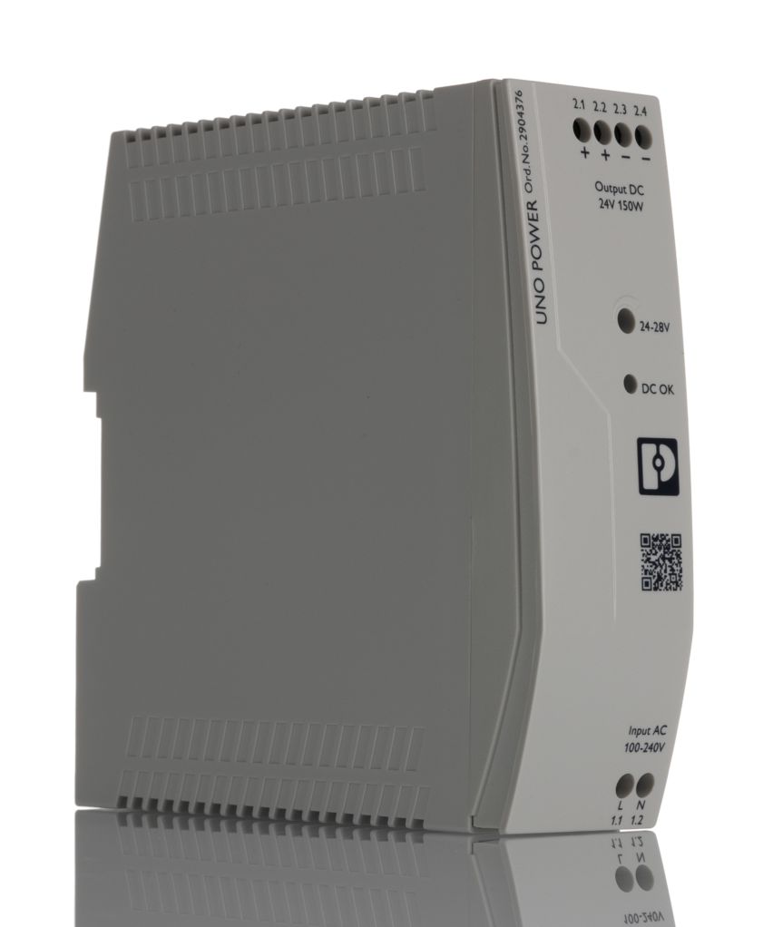 | Product description | Phoenix Contact UNO-PS/1AC/24DC/150W Switch Mode DIN Rail Power Supply 85 → 264V ac Input, 24V dc Output, 6.25A |