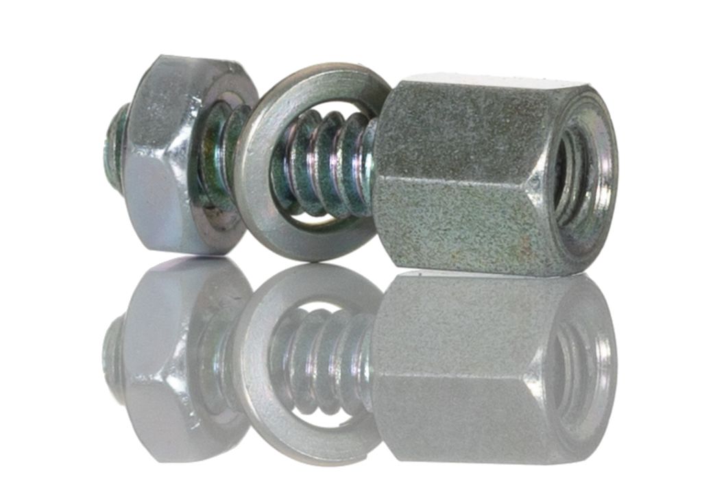 Female screwlock assemblies available in 8 mm thread length or 13 mm thread length which include locking screws, washers and nuts.