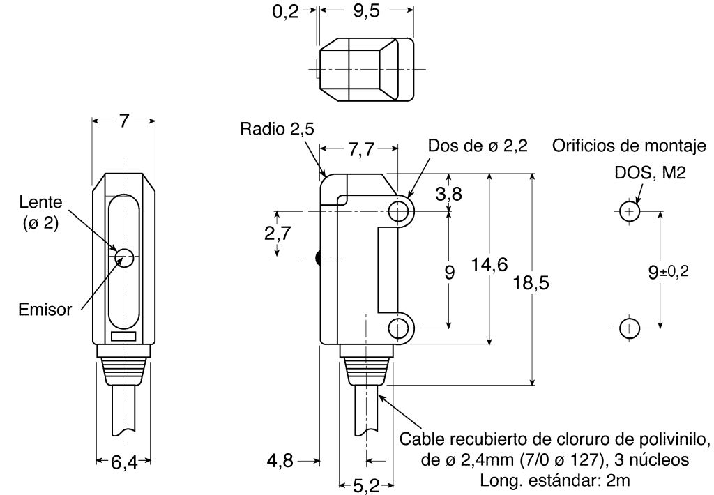 Mini built in amplifier photoelectric sensor. Visible optical spot allows easy axis adjustment. The small "pin-point" LED is ideal for detecting minute sensing objects. Minimal influence of background or ambient shiny metal objects
