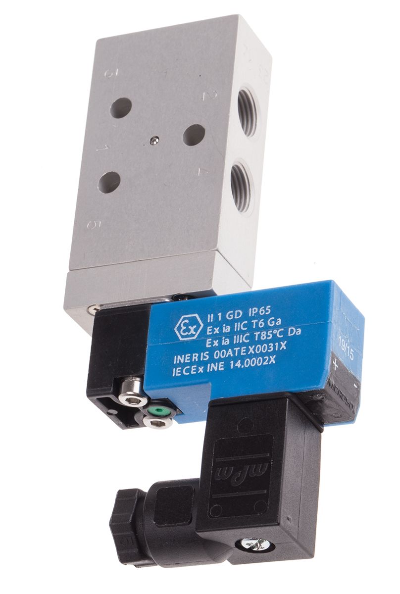 RS PRO 5/2 Pneumatic Solenoid Valve – Solenoid/Spring G 1/8 MDS Series 24V dc