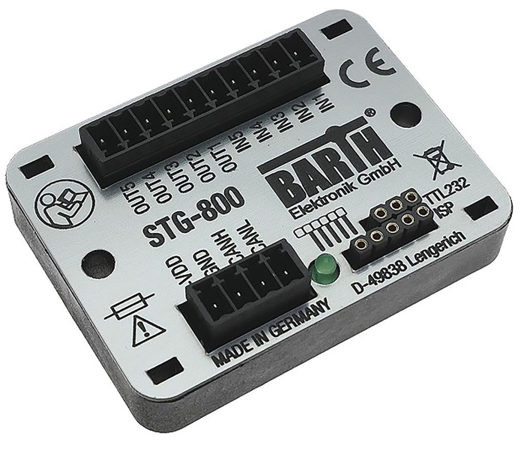 | Product description | BARTH lococube mini-PLC PLC I/O Module - 5 Inputs, 9 Outputs, Digital, PWM, Solid State, For Use With STG-800, CANOpen |