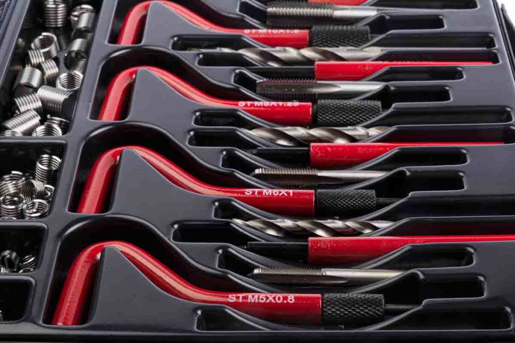 Thread repair kits are versatile kits designed to repair stripped or damaged internal threads in various sizes that have been damaged by over torque, wear and corrosion. They commonly include a collection of tools including a drill, tap, inserts, mandrels and more, ensuring you have the required tools to hand. Thread repair kits are widely used in: