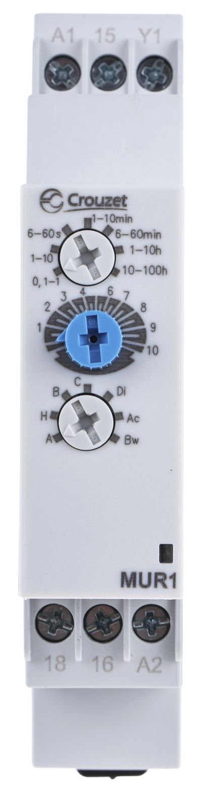 | Product description | Crouzet SPDT Multi Function Timer Relay, 24 → 240 V ac, 24V dc 0.1 s → 100h, DIN Rail Mount |