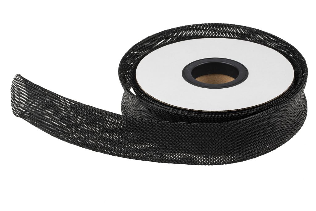 Expandable braided cable sleeving is lightweight and flexible and provides a protective covering for electrical wires, cables, and hoses. This expandable construction of this braided sleeve also makes it ideal for use as a cable management sleeve for bundling cables together and wire harnessing. This braided PET sleeving is used in a wide range of applications in automotive, electronic, computer, industrial and marine industries and can also be used around the home and office for keeping your computer, TV, and home entertainment cables tidy.