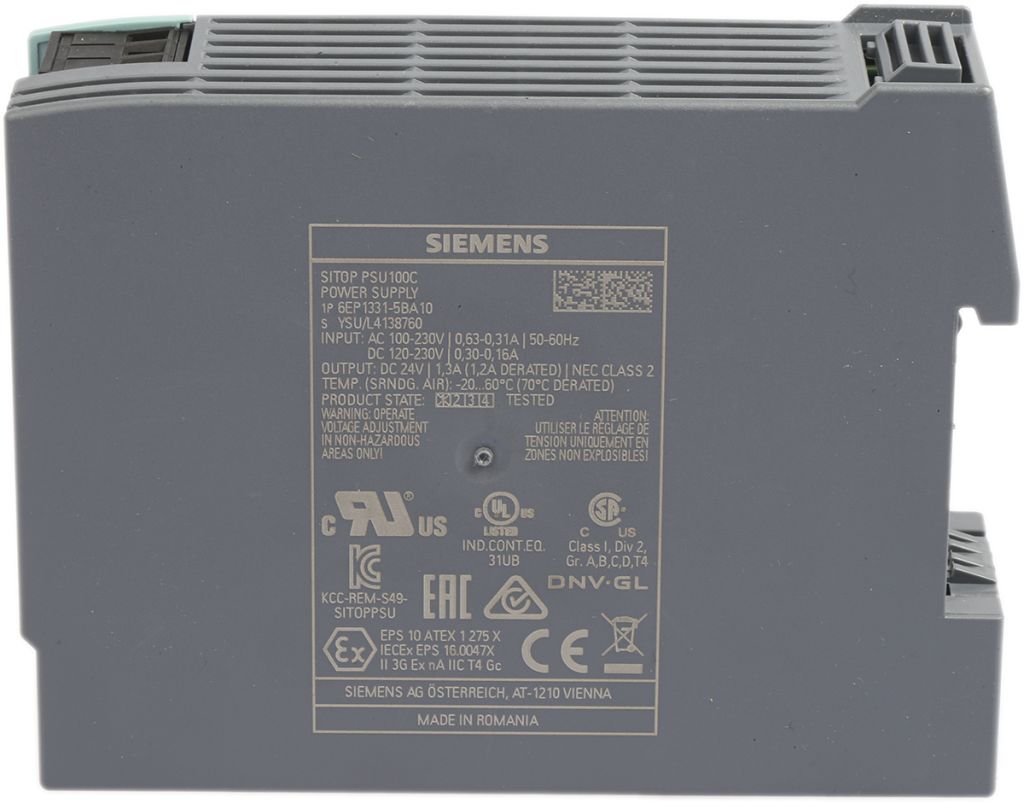 | Product description | Siemens SITOP PSU100C Switch Mode DIN Rail Power Supply 85 → 264V ac Input, 24V dc Output, 1.3A 30W |
