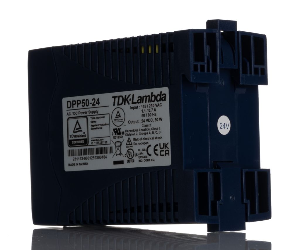 | Product description | TDK-Lambda DPP Switch Mode DIN Rail Power Supply 85 → 264V ac Input, 24V dc Output, 2.1A 50W |