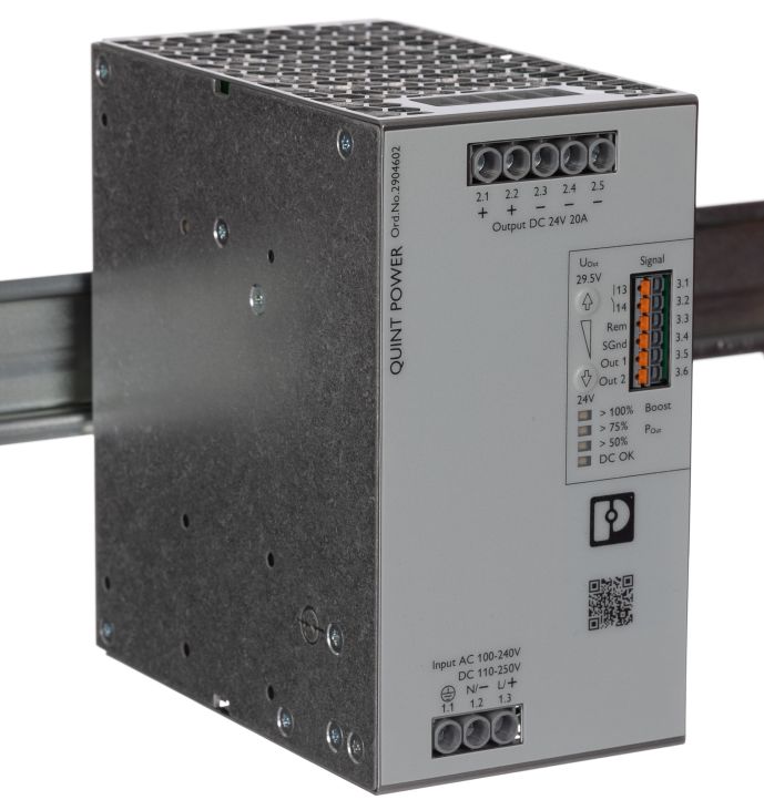Product description Phoenix Contact QUINT4-PS/1AC/24DC/20 Switch Mode DIN Rail Power Supply 100V ac → 240V ac / 110V dc →