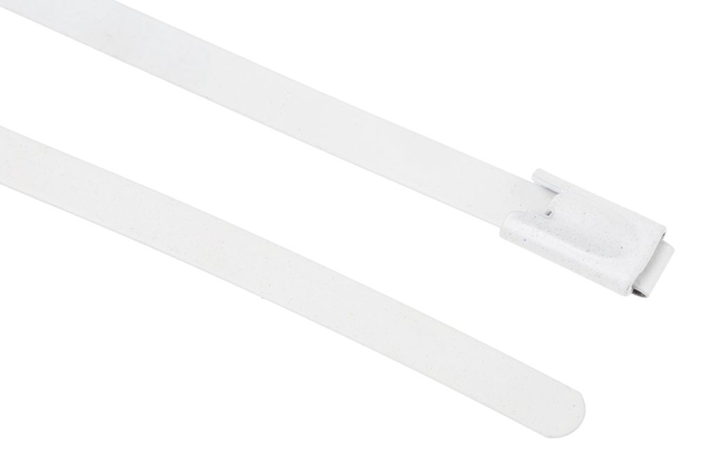 | Product description | RS PRO White Polyester Coated Stainless Steel Roller Ball Cable Tie, 200mm x 4.6 mm |