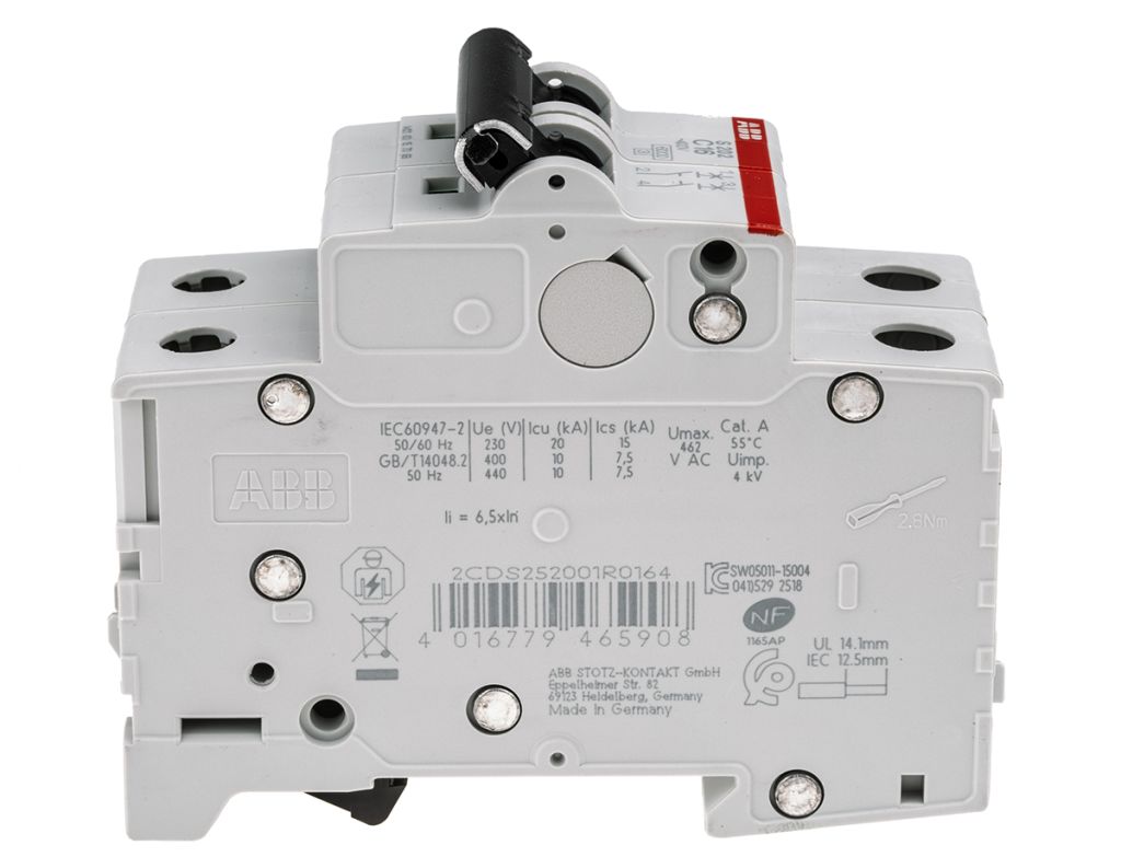 ABB System pro M compact S200M miniature circuit breakers are current limiting. They have two different tripping mechanisms, the delayed thermal tripping mechanism for overload protection and the electro mechanic tripping mechanism for short circuit protection. All MCBs of the product range S200M comply with IEC/EN 60898-1 and IEC/EN 609 47-2, allowing the use for residential, commercial and industrial applications. Bottom-fitting auxiliary contact can be mounted on S200M to save 50% space