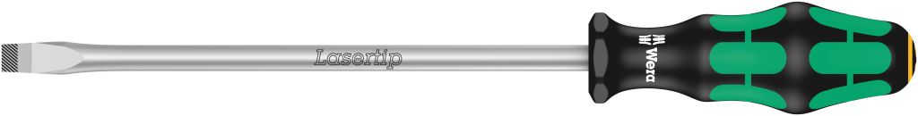 Precision slotted screwdrivers with Kraftform handles for excellent comfort and control With Wera’s Lasertip blades for unrivalled grip.