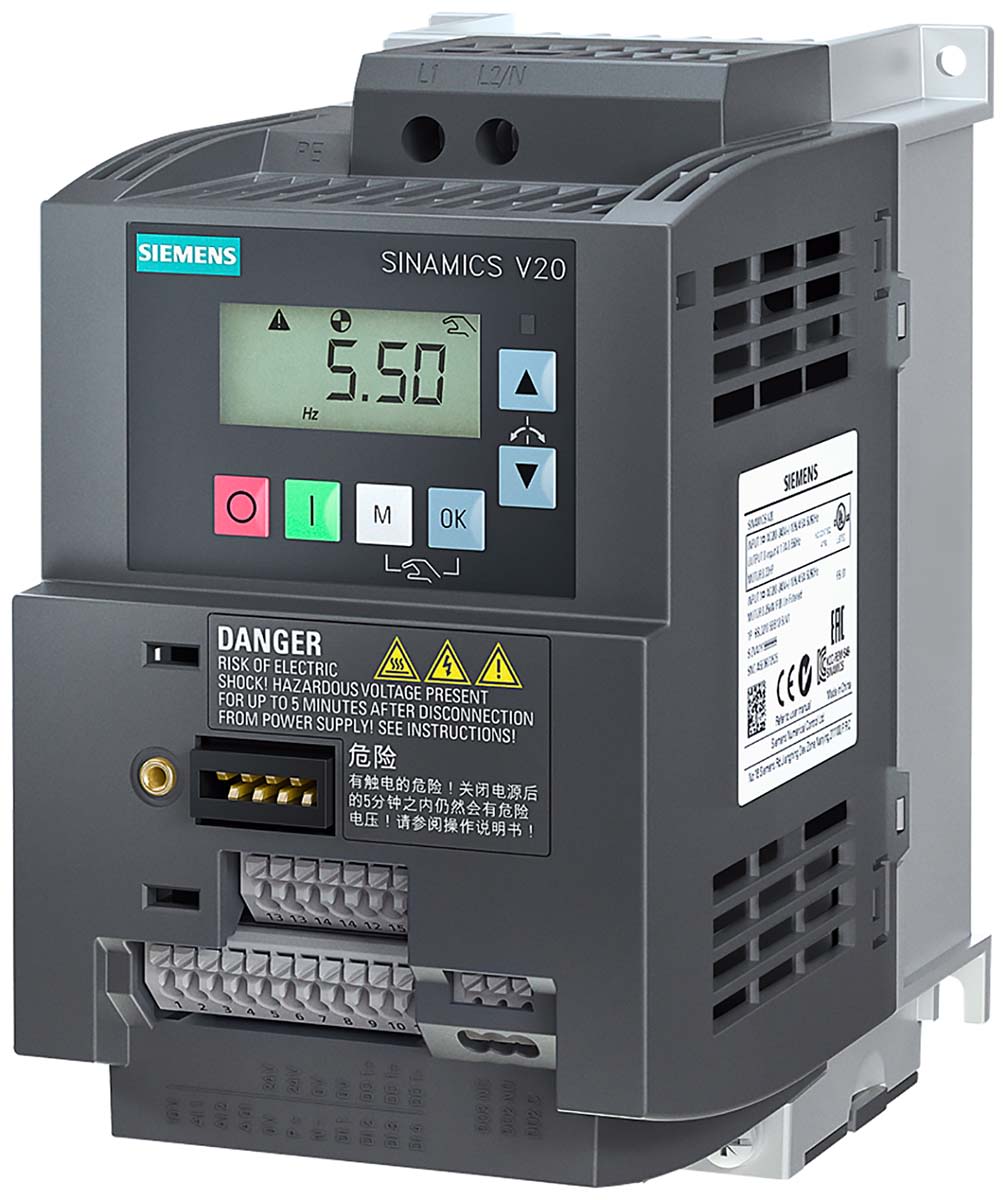 Product description Siemens SINAMICS V20 Converter, 1-Phase In, 550Hz Out, 1.1 kW, 240 V ac, 6 A