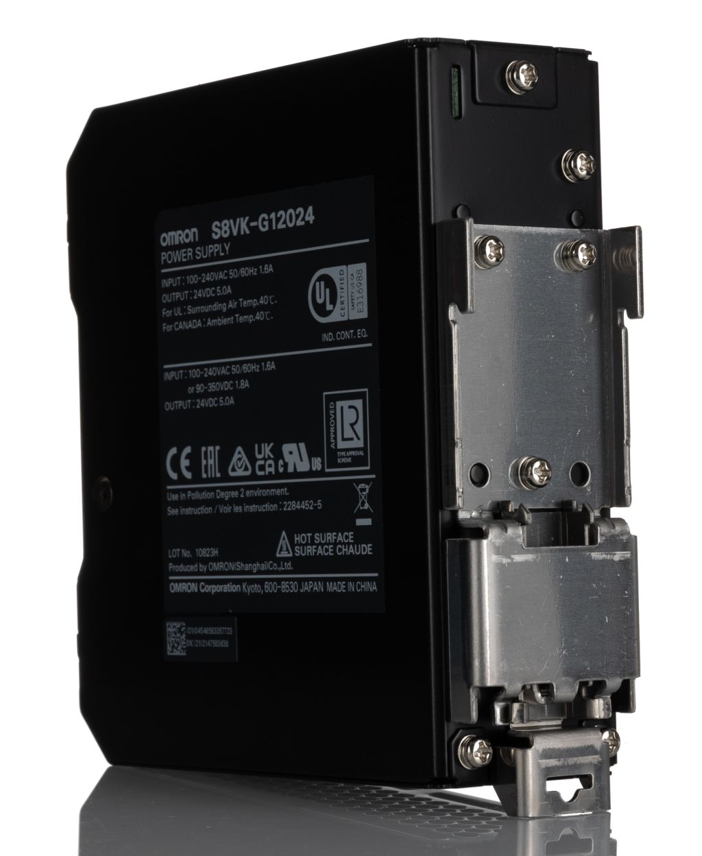 | Product description | Omron S8VK-G Switch Mode DIN Rail Power Supply 85 → 264V ac Input, 24V dc Output, 5A 120W |