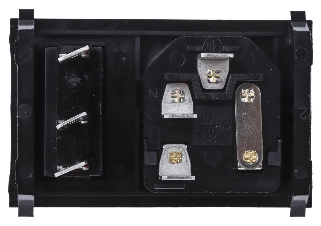 Product description Bulgin C14 Snap-In IEC Connector Male, 10A, 250 V, Fuse Size 5 x 20mm