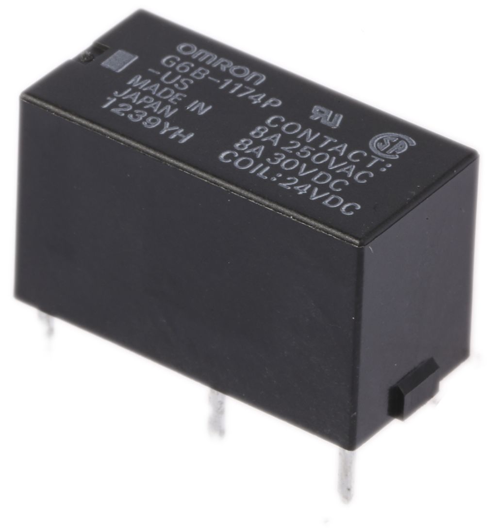 | Product description | Omron, 24V dc Coil Non-Latching Relay SPNO, 8A Switching Current PCB Mount Single Pole, G6B-1174P-US 24DC |