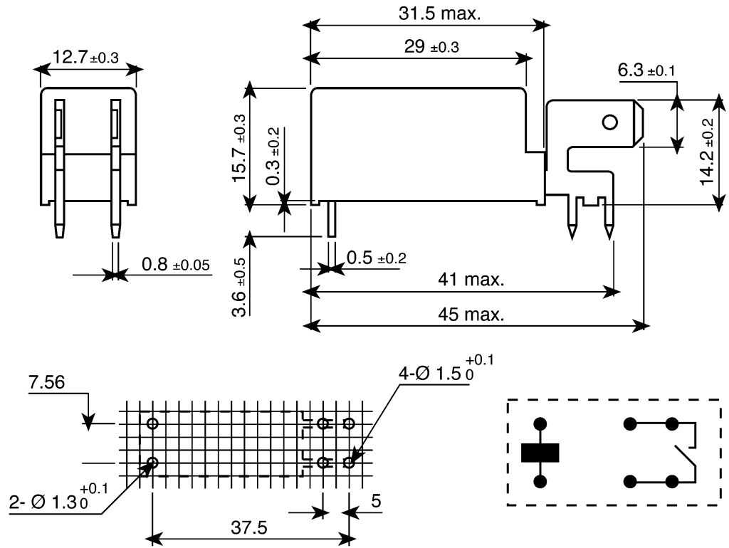 | Product description | RS PRO, 12V dc Coil Non-Latching Relay SPNO, 20A Switching Current PCB Mount Single Pole |