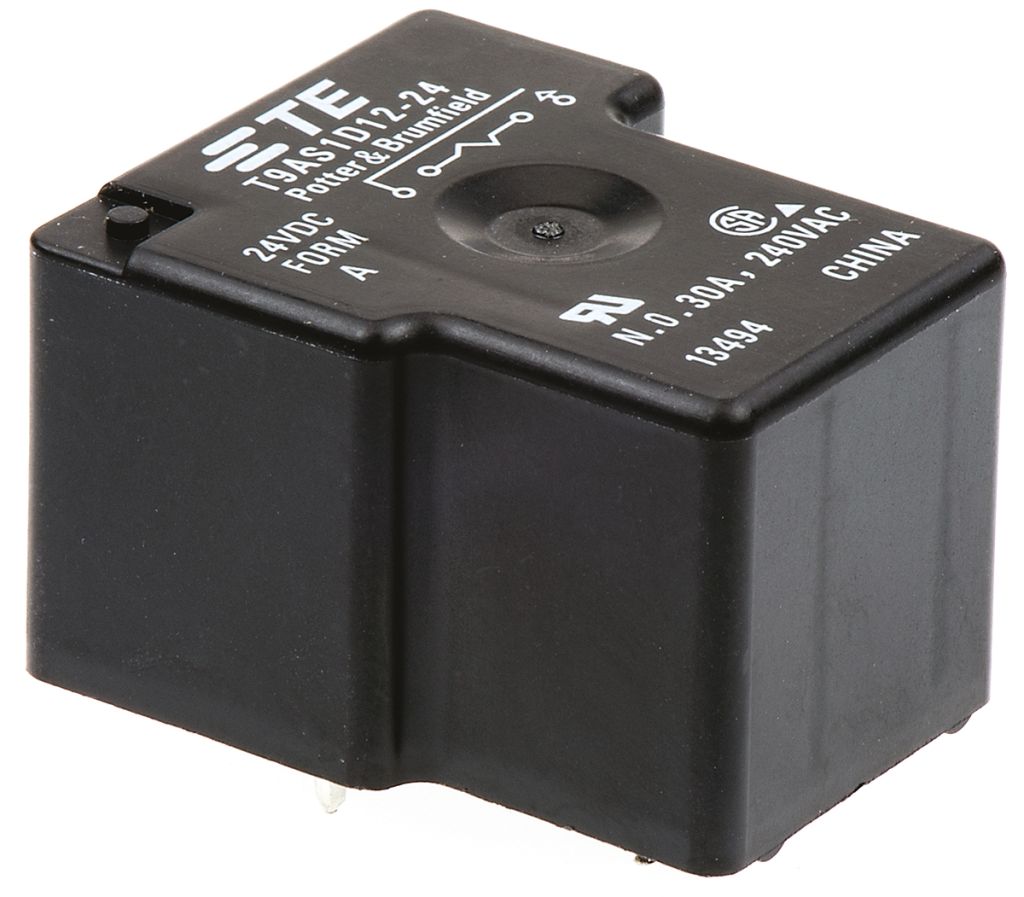 | Product description | TE Connectivity, 24V dc Coil Non-Latching Relay SPNO, 30A Switching Current PCB Mount Single Pole, T9AS1D12-24 |