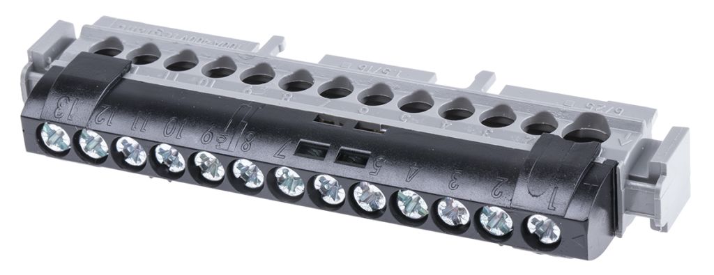 Legrand Distribution Block, 13 Way, 1.5 → 16 mm², 6 → 25 mm², 100A, 400 V ac, Black