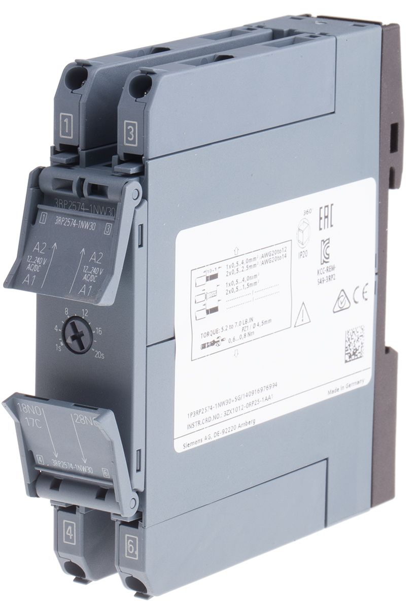 | Product description | Siemens DPNO Timer Relay, Star Delta, 12 → 240V ac/dc 1 → 20s |