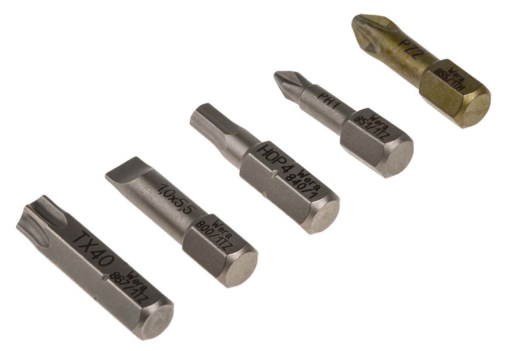 | Product description | Wera 1/4 in Hexagon Phillips, Pozidriv, Slotted, Torx Ratchet Bit Set |
