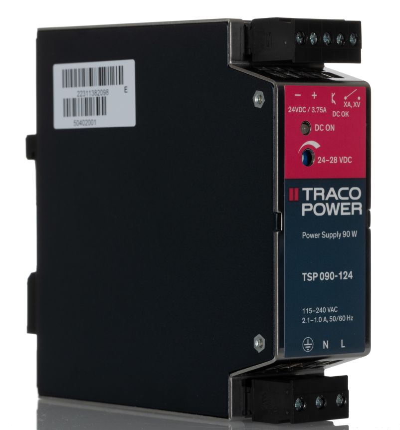 | Product description | TRACOPOWER TSP Switch Mode DIN Rail Power Supply 85 → 264V ac Input, 24V dc Output, 3.75A 90W |